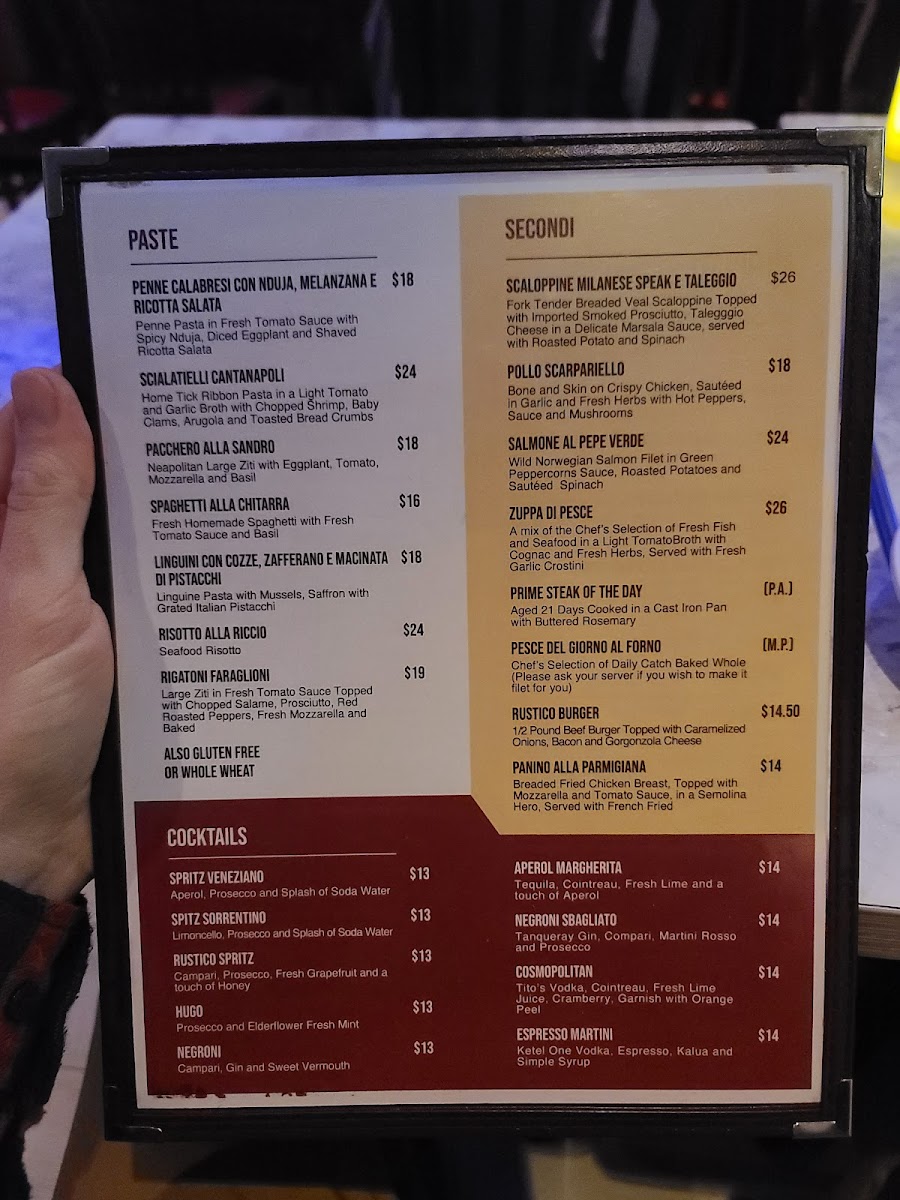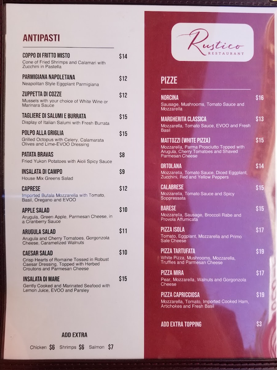 Rustico Taverna Menu
